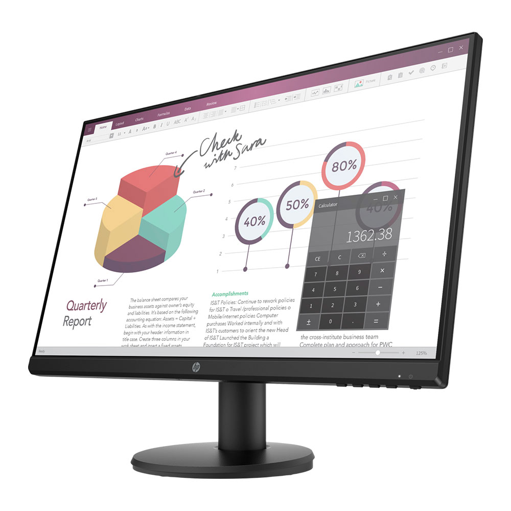 Διεκπεραιώστε τις καθημερινές σας εργασίες και εργαστείτε σε πολλά παράλληλα παράθυρα στην ευρεία οθόνη P24v G4 της ΗΡ που προσαρμόζεται για να σας παράσχει άνεση και προσφέρει ποιότητα εικόνας Full HD και καθαρές γωνίες προβολής 178°.